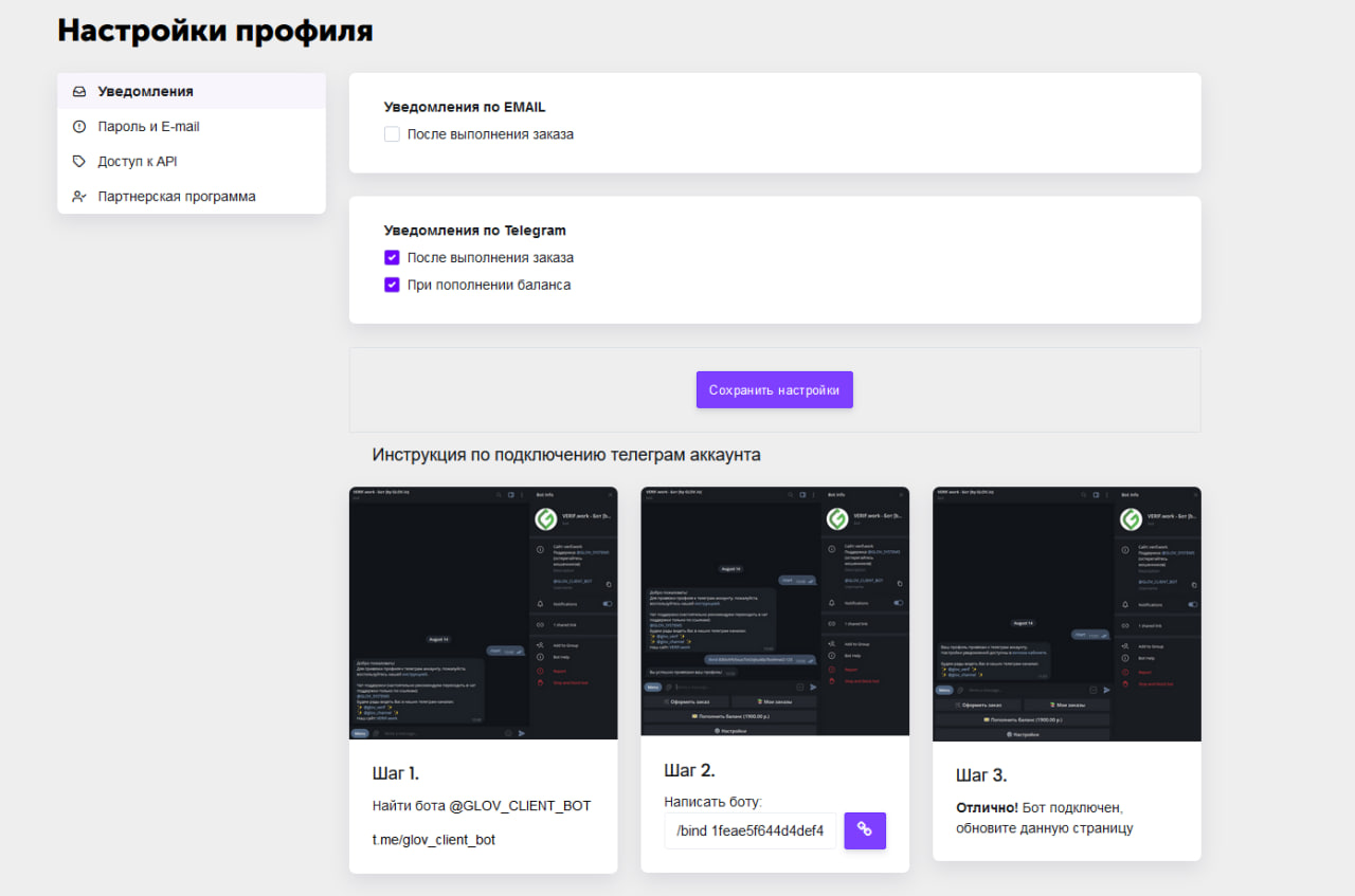 - Ваш баланс на сайте и в телеграм боте синхронизирован.